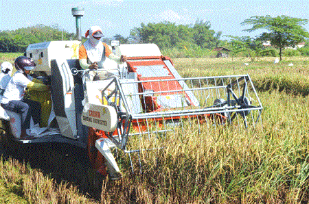 Combine harvester adalah alat pemanen padi yang dapat memotong bulir tanaman yang berdiri, merontokkan dan membersihkan gabah sambil berjalan dilapangan. Dengan demikian waktu pemanen lebih singkat dibandingkan dengan menggunakan tenaga manusia (manual) serta tidak membutuhkan jumlah tenaga kerja manusia yang besar seperti pada pemanenan tradisional. Penggunaan alat ini memerlukan investasi yang besar dan tenaga terlatih yang dapat mengoprasikan alat ini ( Barokah, 2001).